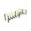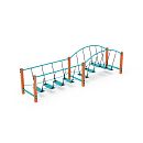 Bezúdržbový kombinovaný balančný mostík s HPL protišmykovými nášľapmi zavesenými na polyesterových lanách je herným prvkom, vďaka ktorému deti trénujú svoju koordináciu, stabilitu a rovnováhu. Vyrobený je zo žiarovo zinkovanej ocele, ktorá je upravená práškovou vypaľovanou farbou. Laná sú vyrobené z polyesterových vlákien, ktoré sú vinuté okolo stredu. Táto konštrukcia lana zvyšuje jeho pevnosť a odolnosť proti mechanickému namáhaniu. Samotný polyester má veľa kladných vlastností. Je odolný voči mikroorganizmom, poveternostným vplyvom, rýchlo schne po daždi, je stálofarebný a vyznačuje sa vysokou pevnosťou. Spojovacie materiály sú nerezové. Ako dopadovú plochu je možné použiť trávnatý povrch, odporúčame však použiť zatrávňovaciu rohož.
