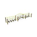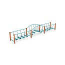 Bezúdržbový kombinovaný balančný mostík s HPL protišmykovými nášľapmi zavesenými na polyesterových lanách je herným prvkom, vďaka ktorému deti trénujú svoju koordináciu, stabilitu a rovnováhu. Vyrobený je zo žiarovo zinkovanej ocele, ktorá je upravená práškovou vypaľovanou farbou. Laná sú vyrobené z polyesterových vlákien, ktoré sú vinuté okolo stredu. Táto konštrukcia lana zvyšuje jeho pevnosť a odolnosť proti mechanickému namáhaniu. Samotný polyester má veľa kladných vlastností. Je odolný voči mikroorganizmom, poveternostným vplyvom, rýchlo schne po daždi, je stálofarebný a vyznačuje sa vysokou pevnosťou. Spojovacie materiály sú nerezové. Ako dopadovú plochu je možné použiť trávnatý povrch, odporúčame však použiť zatrávňovaciu rohož.