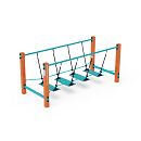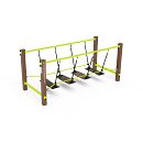 Bezúdržbový balančný mostík s HPL protišmykovými nášľapmi zavesenými na polyesterových lanách je herným prvkom, vďaka ktorému deti trénujú svoju koordináciu, stabilitu a rovnováhu. Vyrobený je zo žiarovo zinkovanej ocele, ktorá je upravená práškovou vypaľovanou farbou. Laná sú vyrobené z polyesterových vlákien, ktoré sú vinuté okolo stredu. Táto konštrukcia lana zvyšuje jeho pevnosť a odolnosť proti mechanickému namáhaniu. Samotný polyester má veľa kladných vlastností. Je odolný voči mikroorganizmom, poveternostným vplyvom, rýchlo schne po daždi, je stálofarebný a vyznačuje sa vysokou pevnosťou. Spojovacie materiály sú nerezové. Ako dopadovú plochu je možné použiť trávnatý povrch, odporúčame však použiť zatrávňovaciu rohož.