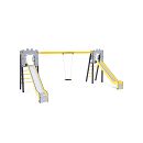 Dve certifikované bezúdržbové veže v tvare A s rebrinovým výlezom a šmykľavkou, doplnená visiacou hojdačkou. Môžete si zvoliť klasický alebo baby sedák. Baby sedák obsahuje ohrádku s priečkou medzi nohami dieťaťa, ktorá zabraňuje zosunutiu alebo spadnutiu. Zároveň sa môže oprieť. Oceľová konštrukcia je odolná voči poveternostným vplyvom vďaka zinkovaniu a lakovaniu odolnou práškovou farbou. Použitý HPL materiál a HDPE plast je chemicky odolný, odolný voči UV žiareniu - stálofarebný, netoxický, recyklovateľný a nelámavý. Nehrozí tak poranenie detí ostrými hranami alebo úlomkami.