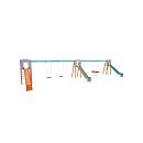 Tri certifikované bezúdržbové veže v tvare A. Dve s rebrinovým výlezom a šmykľavkou, jedna s lanovou sieťou a šmykľavkou prepojené dvomi visiacimi hojdačkami. Jedna dvojhojdačka môže obsahovať dva klasické sedáky alebo dva baby sedáky alebo ich kombináciu. Druhá hojdačka je visiace hniezdo. Baby sedák obsahuje ohrádku s priečkou medzi nohami dieťaťa, ktorá zabraňuje zosunutiu alebo spadnutiu. Zároveň sa môže oprieť. Hniezdo je vhodné k hojdaniu viacerých detí a to aj netradične, poležiačky. Hniezdo má bezpečnostný záves s poistnou retiazkou. Oceľová konštrukcia je odolná voči poveternostným vplyvom vďaka zinkovaniu a lakovaniu odolnou práškovou farbou. Použitý HPL materiál a HDPE plast je chemicky odolný, odolný voči UV žiareniu - stálofarebný, netoxický, recyklovateľný a nelámavý. Nehrozí tak poranenie detí ostrými hranami alebo úlomkami.