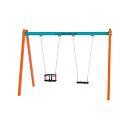 Visiaca dvojhojdačka s dvoma sedákmi - klasickým a baby sedákom. Je vyrobená zo žiarovo zinkovanej ocele, ktorá je upravená práškovou vypaľovanou farbou. Spojovacie materiály sú nerezové a zakryté plastovými krytkami pre zvýšenie životnosti a bezpečnosti. Ako dopadovú plochu je vhodné použiť zatrávňovaciu rohož.