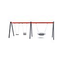 Visiaca trojhojdačka s dvoma sedákmi, klasickým a baby sedákom, je doplnená hniezdom. Vyrobená je zo žiarovo zinkovanej ocele, ktorá je upravená práškovou vypaľovanou farbou. Spojovacie materiály sú nerezové a zakryté plastovými krytkami pre zvýšenie životnosti a bezpečnosti. Ako dopadovú plochu je vhodné použiť zatrávňovaciu rohož.