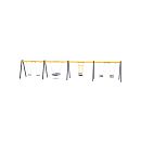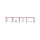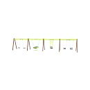 Visiaca hojdačka so všetkými druhmi sedákov - 2x klasickým, 2x baby sedákom a hniezdom je doplnená špeciálnou konštrukciou pre hojdanie matky s dieťaťom. Vyrobená je zo žiarovo zinkovanej ocele, ktorá je upravená práškovou vypaľovanou farbou. Spojovacie materiály sú nerezové a zakryté plastovými krytkami pre zvýšenie životnosti a bezpečnosti.
