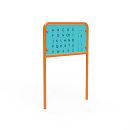 Poznávanie písmen abecedy hravou formou. Poznať jednotlivé písmená, ich tvary a výslovnosť je dôležité nielen pre následné čítanie, ale aj na trénovanie reči. S touto tabuľou je možné trénovať aj Braillovo písmo. Konštrukcia edukatívneho panelu je vyrobená zo zinkovanej ocele ošetrenou práškovým lakovaním. Spoje sú nerezové a zakryté plastovými krytkami pre zvýšenie bezpečnosti a životnosti spojov. Samotný panel je vyrobený z HPL materiálu, ktorý je chemicky odolný, odolný voči UV žiareniu, netoxický, recyklovateľný