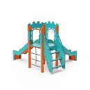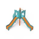 Jednovežová kombinovaná zostava - veža, na ktorú deti vylezú po schodíkoch alebo lanovej lezeckej stene a dolu sa môžu spustiť po jednej z dvoch šmýkaliek. Tyrkysovo-oranžový dizajn už z diaľky láka ku hre. Oceľová konštrukcia je odolná voči poveternostným vplyvom vďaka žiarovému zinkovaniu a lakovaniu odolnou práškovou farbou. Použitý HPL materiál je chemicky odolný, odolný voči UV žiareniu - stálofarebný, netoxický, recyklovateľný nelámavý. Nehrozí tak poranenie detí ostrými hranami alebo úlomkami. Laná sú vyrobené z polyesterových vlákien, ktoré sú vinuté okolo stredovej výstuže. Táto konštrukcia lana zvyšuje jeho pevnosť a odolnosť proti mechanickému namáhaniu. Samotný polyester je odolný voči mikroorganizmom, poveternostným vplyvom, rýchlo schne po daždi, je stálofarebný a vyznačuje sa vysokou pevnosťou. Všetky spoje sú nerezové a zakryté plastovými krytkami pre zvýšenie životnosti a bezpečnosti.