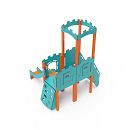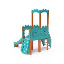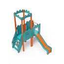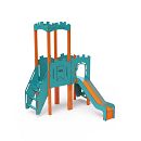 Dvojvežová kombinovaná zostava - veža s hradbami a nízka veža, na ktorú deti vylezú po schodíkoch alebo po lezeckej stene s úchytmi a môžu sa spustiť dole po šmykľavke. Hrať sa môžu aj v tuneli, ktorý vedie pod vežou. Oceľová konštrukcia je odolná voči poveternostným vplyvom vďaka zinkovaniu a lakovaniu odolnou práškovou farbou. Použitý HPL materiál je chemicky odolný, odolný voči UV žiareniu - stálofarebný, netoxický, recyklovateľný a nelámavý. Nehrozí tak poranenie detí ostrými hranami alebo úlomkami. Všetky spoje sú nerezové a zakryté plastovými krytkami pre zvýšenie životnosti a bezpečnosti.