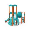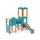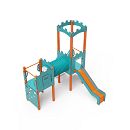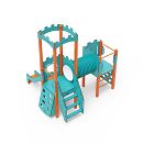 Dvojvežová kombinovaná zostava - jedna veža s hradbami a druhá nízka sú prepojené tunelom. Na zostavu deti vylezú po kolmej alebo šikmej lezeckej stene s úchytmi, po schodíkoch alebo rebríku a dolu sa môžu spustiť po šmýkalke. Tyrkysovo-oranžový dizajn už z diaľky láka ku hre. Oceľová konštrukcia je odolná voči poveternostným vplyvom vďaka žiarovému zinkovaniu a lakovaniu odolnou práškovou farbou. Použitý HPL materiál je chemicky odolný, odolný voči UV žiareniu - stálofarebný, netoxický, recyklovateľný a nelámavý. Nehrozí tak poranenie detí ostrými hranami alebo úlomkami. Všetky spoje sú nerezové a zakryté plastovými krytkami pre zvýšenie životnosti a bezpečnosti.