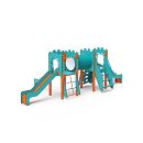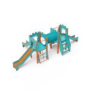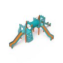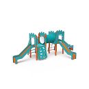 Dvojvežová kombinovaná zostava - dve veže prepojené tunelom. Na zostavu deti vylezú po schodíkoch, po lezeckej stene s úchytmi alebo po oblúkovej lanovej sieti a dolu sa môžu spustiť po jednej z troch šmýkaliek. Tyrkysovo-oranžový dizajn už z diaľky láka ku hre. Oceľová konštrukcia je odolná voči poveternostným vplyvom vďaka žiarovému zinkovaniu a lakovaniu odolnou práškovou farbou. Použitý HPL plast je chemicky odolný, odolný voči UV žiareniu - stálofarebný, netoxický, recyklovateľný a nelámavý. Nehrozí tak poranenie detí ostrými hranami alebo úlomkami. Laná sú vyrobené z polyesterových vlákien, ktoré sú vinuté okolo stredovej výstuže. Táto konštrukcia lana zvyšuje jeho pevnosť a odolnosť proti mechanickému namáhaniu. Samotný polyester je odolný voči mikroorganizmom, poveternostným vplyvom, rýchlo schne po daždi, je stálofarebný a vyznačuje sa vysokou pevnosťou. Všetky spoje sú nerezové a zakryté plastovými krytkami pre zvýšenie životnosti a bezpečnosti.