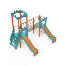 Na zostavu deti vylezú po schodíkoch, po šikmej alebo kolmej lezeckej stene s úchytmi alebo po lanovej sieti a dolu sa môžu spustiť po jednej z dvoch šmýkaliek. Tyrkysovo-oranžový dizajn už z diaľky láka ku hre. Oceľová konštrukcia je odolná voči poveternostným vplyvom vďaka žiarovému zinkovaniu a lakovaniu odolnou práškovou farbou. Použitý HPL materiál je chemicky odolný, odolný voči UV žiareniu - stálofarebný, netoxický, recyklovateľný a nelámavý. Nehrozí tak poranenie detí ostrými hranami alebo úlomkami. Laná sú vyrobené z polyesterových vlákien, ktoré sú vinuté okolo stredovej výstuže. Táto konštrukcia lana zvyšuje jeho pevnosť a odolnosť proti mechanickému namáhaniu. Samotný polyester je odolný voči mikroorganizmom, poveternostným vplyvom, rýchlo schne po daždi, je stálofarebný a vyznačuje sa vysokou pevnosťou. Všetky spoje sú nerezové a zakryté plastovými krytkami pre zvýšenie životnosti a bezpečnosti.