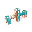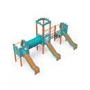 Trojvežová kombinovaná zostava - dve veže sú prepojené so strednou vežou s hradbami lanovým mostíkom a tunelom. Na zostavu deti vylezú po schodíkoch, po kolmej lezeckej stene s úchytmi alebo po lanovej sieti a dolu sa môžu spustiť po jednej z troch šmýkaliek. Tyrkysovo-oranžový dizajn už z diaľky láka ku hre. Oceľová konštrukcia je odolná voči poveternostným vplyvom vďaka žiarovému zinkovaniu a lakovaniu odolnou práškovou farbou. Použitý HPL materiál je chemicky odolný, odolný voči UV žiareniu - stálofarebný, netoxický, recyklovateľný a nelámavý. Nehrozí tak poranenie detí ostrými hranami alebo úlomkami. Laná sú vyrobené z polyesterových vlákien, ktoré sú vinuté okolo stredovej výstuže. Táto konštrukcia lana zvyšuje jeho pevnosť a odolnosť proti mechanickému namáhaniu. Samotný polyester je odolný voči mikroorganizmom, poveternostným vplyvom, rýchlo schne po daždi, je stálofarebný a vyznačuje sa vysokou pevnosťou. Všetky spoje sú nerezové a zakryté plastovými krytkami pre zvýšenie životnosti a bezpečnosti.