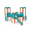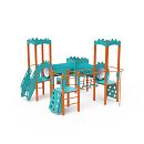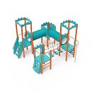 Štvorvežová kombinovaná zostava. Dve veže s hradbami a dve nízke veže sú prepojené diagonálnou lanovou stenou, lanovým mostíkom a dvoma tunelmi. Zostava obsahuje schodíky, šikmú lezeckú stenu, lezeckú tyč, šikmú lanovú sieť, rebríky a dve šmýkalky. Tyrkysovo-oranžový dizajn už z diaľky láka ku hre. Oceľová konštrukcia je odolná voči poveternostným vplyvom vďaka žiarovému zinkovaniu a lakovaniu odolnou práškovou farbou. Použitý HPL materiál je chemicky odolný, odolný voči UV žiareniu - stálofarebný, netoxický, recyklovateľný a nelámavý. Nehrozí tak poranenie detí ostrými hranami alebo úlomkami. Laná sú vyrobené z polyesterových vlákien, ktoré sú vinuté okolo stredovej výstuže. Táto konštrukcia lana zvyšuje jeho pevnosť a odolnosť proti mechanickému namáhaniu. Samotný polyester je odolný voči mikroorganizmom, poveternostným vplyvom, rýchlo schne po daždi, je stálofarebný a vyznačuje sa vysokou pevnosťou. Všetky spoje sú nerezové a zakryté plastovými krytkami pre zvýšenie životnosti a bezpečnosti.
