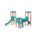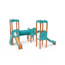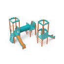 Trojvežová kombinovaná zostava v tvare písmena L. Dve veže s hradbami sú prepojené so strednou vežou diagonálnou lanovou stenou a tunelom. Na zostavu deti vylezú po schodíkoch, po šikmej lezeckej stene s úchytmi, po lezeckej tyči alebo po rebríku a dolu sa môžu spustiť po jednej z dvoch šmýkaliek alebo po lezeckej tyči. Tyrkysovo-oranžový dizajn už z diaľky láka ku hre. Oceľová konštrukcia je odolná voči poveternostným vplyvom vďaka žiarovému zinkovaniu a lakovaniu odolnou práškovou farbou. Použitý HPL materiál je chemicky odolný, odolný voči UV žiareniu - stálofarebný, netoxický, recyklovateľný a nelámavý. Nehrozí tak poranenie detí ostrými hranami alebo úlomkami. Laná sú vyrobené z polyesterových vlákien, ktoré sú vinuté okolo stredovej výstuže. Táto konštrukcia lana zvyšuje jeho pevnosť a odolnosť proti mechanickému namáhaniu. Samotný polyester je odolný voči mikroorganizmom, poveternostným vplyvom, rýchlo schne po daždi, je stálofarebný a vyznačuje sa vysokou pevnosťou. Všetky spoje sú nerezové a zakryté plastovými krytkami pre zvýšenie životnosti a bezpečnosti.