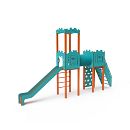 Dvojvežová kombinovaná zostava - dve veže prepojené tunelom. Na zostavu deti vylezú po schodíkoch alebo po rebríku a dolu sa môžu spustiť po šmýkalke. Tyrkysovo-oranžový dizajn už z diaľky láka ku hre. Oceľová konštrukcia je odolná voči poveternostným vplyvom vďaka žiarovému zinkovaniu a lakovaniu odolnou práškovou farbou. Použitý HPL materiál je chemicky odolný, odolný voči UV žiareniu - stálofarebný, netoxický, recyklovateľný