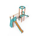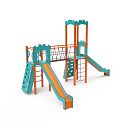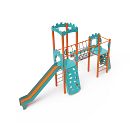 Dvojvežová kombinovaná zostava - dve veže prepojené lanovým mostíkom. Na zostavu deti vylezú po jednej z dvoch lezeckých stien s úchytmi, po lanovej sieti alebo rebríku a dolu sa môžu spustiť po jednej z dvoch šmýkaliek. Tyrkysovo-oranžový dizajn už z diaľky láka ku hre. Oceľová konštrukcia je odolná voči poveternostným vplyvom vďaka žiarovému zinkovaniu a lakovaniuodolnou práškovou farbou. Použitý HPL materiál je chemicky odolný, odolný voči UV žiareniu - stálofarebný, netoxický, recyklovateľný a nelámavý. Nehrozí tak poranenie detí ostrými hranami alebo úlomkami. Laná sú vyrobené z polyesterových vlákien, ktoré sú vinuté okolo stredovej výstuže. Táto konštrukcia lana zvyšuje jeho pevnosť a odolnosť proti mechanickému namáhaniu. Samotný polyester je odolný voči mikroorganizmom, poveternostným vplyvom, rýchlo schne po daždi, je stálofarebný a vyznačuje sa vysokou pevnosťou. Všetky spoje sú nerezové a zakryté plastovými krytkami pre zvýšenie životnosti a bezpečnosti.