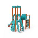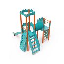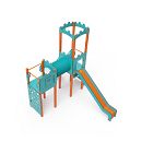 Dvojvežová kombinovaná zostava - jedna veža s hradbami a druhá nízka sú prepojené tunelom. Na zostavu deti vylezú po kolmej alebo šikmej lezeckej stene s úchytmi, po schodíkoch alebo rebríku a dolu sa môžu spustiť po šmýkalke. Tyrkysovo-oranžový dizajn už z diaľky láka ku hre. Oceľová konštrukcia je odolná voči poveternostným vplyvom vďaka žiarovému zinkovaniu a lakovaniu odolnou práškovou farbou. Použitý HPL materiál je chemicky odolný, odolný voči UV žiareniu - stálofarebný, netoxický, recyklovateľný a nelámavý. Nehrozí tak poranenie detí ostrými hranami alebo úlomkami. Všetky spoje sú nerezové a zakryté plastovými krytkami pre zvýšenie životnosti a bezpečnosti.