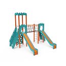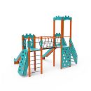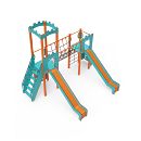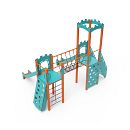 Dvojvežová kombinovaná zostava - dve veže prepojené lanovým balančným mostíkom. Na zostavu deti vylezú po schodíkoch, po šikmej alebo kolmej lezeckej stene s úchytmi alebo po lanovej sieti a dolu sa môžu spustiť po jednej z dvoch šmýkaliek. Tyrkysovo-oranžový dizajn už z diaľky láka ku hre. Oceľová konštrukcia je odolná voči poveternostným vplyvom vďaka žiarovému zinkovaniu a lakovaniu odolnou práškovou farbou. Použitý HPL materiál je chemicky odolný, odolný voči UV žiareniu - stálofarebný, netoxický, recyklovateľný a nelámavý. Nehrozí tak poranenie detí ostrými hranami alebo úlomkami. Laná sú vyrobené z polyesterových vlákien, ktoré sú vinuté okolo stredovej výstuže. Táto konštrukcia lana zvyšuje jeho pevnosť a odolnosť proti mechanickému namáhaniu. Samotný polyester je odolný voči mikroorganizmom, poveternostným vplyvom, rýchlo schne po daždi, je stálofarebný a vyznačuje sa vysokou pevnosťou. Všetky spoje sú nerezové a zakryté plastovými krytkami pre zvýšenie životnosti a bezpečnosti.