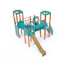 Štvorvežová kombinovaná zostava. Dve veže s hradbami a dve nízke veže sú prepojené diagonálnou lanovou stenou, lanovým mostíkom a dvoma tunelmi. Zostava obsahuje schodíky, šikmú lezeckú stenu, lezeckú tyč, šikmú lanovú sieť, rebríky a dve šmýkalky. Tyrkysovo-oranžový dizajn už z diaľky láka ku hre. Oceľová konštrukcia je odolná voči poveternostným vplyvom vďaka žiarovému zinkovaniu a lakovaniu odolnou práškovou farbou. Použitý HPL materiál je chemicky odolný, odolný voči UV žiareniu - stálofarebný, netoxický, recyklovateľný a nelámavý. Nehrozí tak poranenie detí ostrými hranami ale-bo úlomkami. Laná sú vyrobené z polyesterových vlákien, ktoré sú vinuté okolo stredovej výstuže. Táto konštrukcia lana zvyšuje jeho pevnosť a odolnosť proti mechanickému namáhaniu. Samotný polyester je odolný voči mikroorganizmom, poveternostným vplyvom, rýchlo schne po daždi, je stálofarebný a vyznačuje sa vysokou pevnosťou. Všetky spoje sú nerezové a zakryté plastovými krytkami pre zvýšenie životnosti a bezpečnosti.