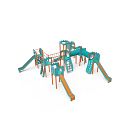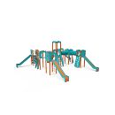 Sedemvežová kombinovaná zostava. Hlavná veža s hradbami a šesť nízkych veží sú prepojené lanovým mostíkom, lanovým balančným mostíkom, diagonálnou lanovou stenou a tunelmi. Zostava obsahuje schodíky, šikmú lezeckú stenu s lanom, kolmú lezeckú stenu, šikmé lanové sieť, počítadlo, piškvôrky a päť šmýkaliek. Tyrkysovo-oranžový dizajn už z diaľky láka ku hre. Oceľová konštrukcia je odolná voči poveternostným vplyvom vďaka žiarovému zinkovaniu a lakovaniu odolnou práškovou farbou. Použitý HPL materiál je chemicky odolný, odolný voči UV žiareniu - stálofarebný, netoxický, recyklovateľný a nelámavý. Nehrozí tak poranenie detí ostrými hranami alebo úlomkami. Laná sú vyrobené z polyesterových vlákien, ktoré sú vinuté okolo stredovej výstuže. Táto konštrukcia lana zvyšuje jeho pevnosť a odolnosť proti mechanickému namáhaniu. Samotný polyester je odolný voči mikroorganizmom, poveternostným vplyvom, rýchlo schne po daždi, je stálofarebný a vyznačuje sa vysokou pevnosťou. Všetky spoje sú nerezové a zakryté plastovými krytkami pre zvýšenie životnosti a bezpečnosti.