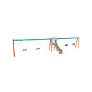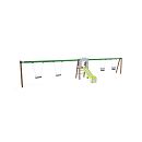 Certifikovaná bezúdržbová veža v tvare A s rebrinovým výlezom a šmykľavkou, doplnená dvoma visiacimi hojdačkami. Na jednej strane sú dva klasické sedáky, na druhej strane dva baby sedáky. Baby sedák obsahuje ohrádku s priečkou medzi nohami dieťaťa, ktorá zabraňuje zosunutiu alebo spadnutiu počas hojdania. Zároveň sa môže oprieť. Oceľová konštrukcia je odolná voči poveternostným vplyvom vďaka zinkovaniu a lakovaniu odolnou práškovou farbou. Použitý HPL materiál a HDPE plast je chemicky odolný, odolný voči UV žiareniu - stálofarebný, netoxický, recyklovateľný a nelámavý. Nehrozí tak poranenie detí ostrými hranami alebo úlomkami. Všetky spoje sú nerezové a zakryté plastovými krytkami pre zvýšenie životnosti a bezpečnosti.