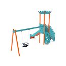 Jednovežová kombinovaná zostava mini - veža s cimburím, na ktorú deti vylezú po šikmej lezeckej stene alebo schodiskovom výleze a dolu sa môžu spustiť po šmykľavke. Veža je doplnená o visiacu hojdačku. Tyrkysovo-oranžový dizajn už z diaľky láka ku hre. Oceľová konštrukcia je odolná voči poveternostným vplyvom vďaka žiarovému zinkovaniu a lakovaniu odolnou práškovou farbou. Použitý HPL materiál je chemicky odolný, odolný voči UV žiareniu - stálofarebný, netoxický, recyklovateľný a nelámavý. Nehrozí tak poranenie detí ostrými hranami alebo úlomkami. Všetky spoje sú nerezové a zakryté plastovými krytkami pre zvýšenie životnosti a bezpečnosti.