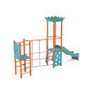 Dvojvežová kombinovaná zostava mini. Veže sú prepojené diagonálnym lanovým mostom. Na zostavu deti vylezú po kolmým lanovým výlezom, kolmým rebrinovým výlezom, kolmým lezeckým výlezom, šikmým lanovým výlezom, schodiskovom výleze a dolu sa môžu spustiť po šmykľavke. Tyrkysovo-oranžový dizajn už z diaľky láka ku hre. Oceľová konštrukcia je odolná voči poveternostným vplyvom vďaka žiarovému zinkovaniu a lakovaniu odolnou práškovou farbou. Použitý HPL materiál je chemicky odolný, odolný voči UV žiareniu - stálofarebný, netoxický, recyklovateľný a nelámavý. Nehrozí tak poranenie detí ostrými hranami alebo úlomkami. Všetky spoje sú nerezové a zakryté plastovými krytkami pre zvýšenie životnosti a bezpečnosti.